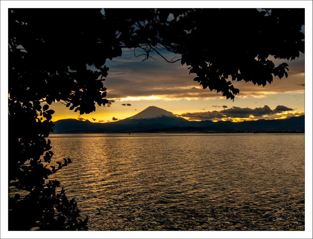Anche se la giornata non è particolarmente limpida, la vista del monte Fuji da Enoshima è uno spettacolo.