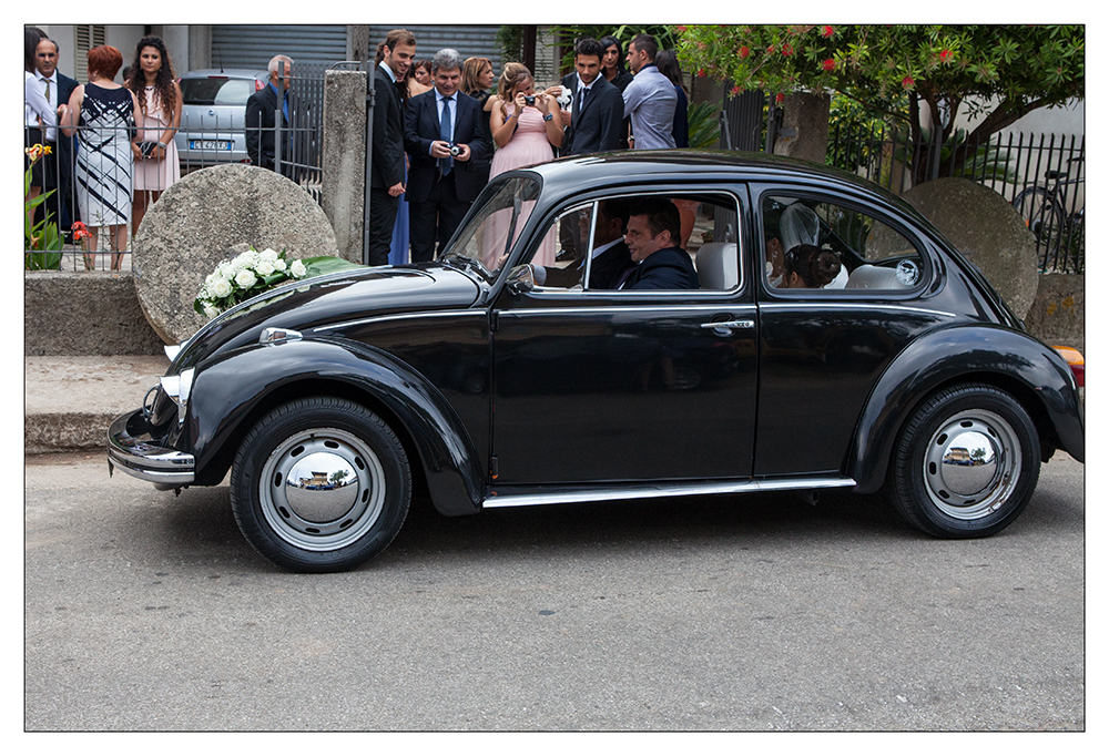 Il Pasticcino dispone anche di auto d’epoca. Abbiamo usato il suo Maggiolone, che trovo romantico e semplice, per il mio arrivo in chiesa insieme a papà e damigella, e per il viaggio con Leonardo verso il ristorante. Grazie al fatto che era di proprietà del pasticcere, è stato anche economico.