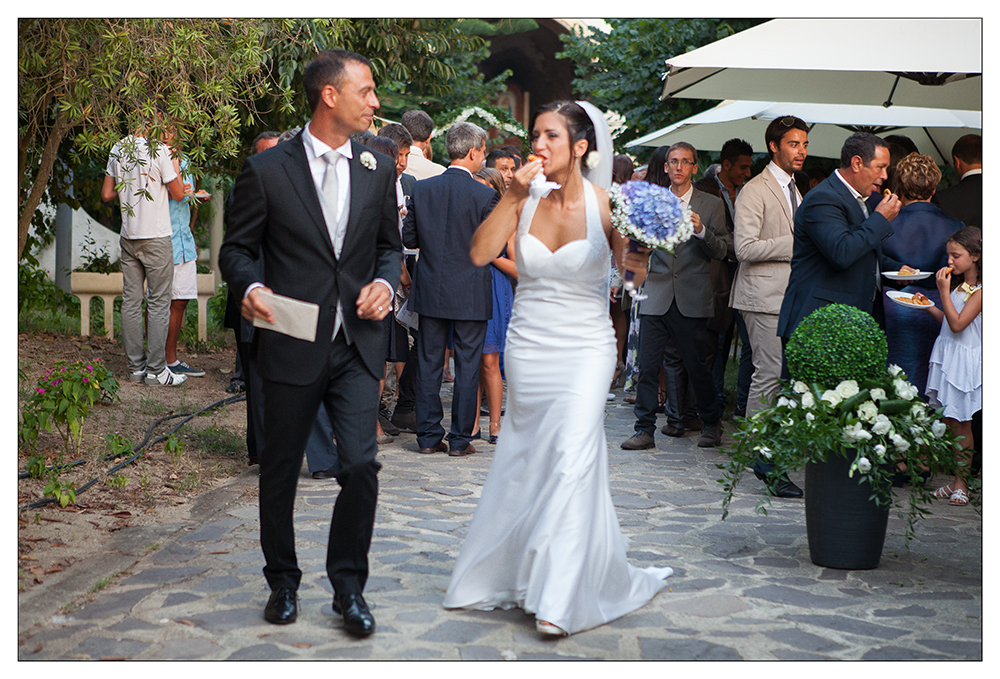 Per fare in modo che gli ospiti non dovessero attendere troppo prima di mangiare, abbiamo deciso di allestire un buffet all’uscita della chiesa. Questo buffet, che noi sposi non abbiamo quasi visto perché portati via dai fotografi, è stato fornito da Il Pasticcino, cui ci eravamo rivolti per i dolci ma che per fortuna si occupava di catering in generale.